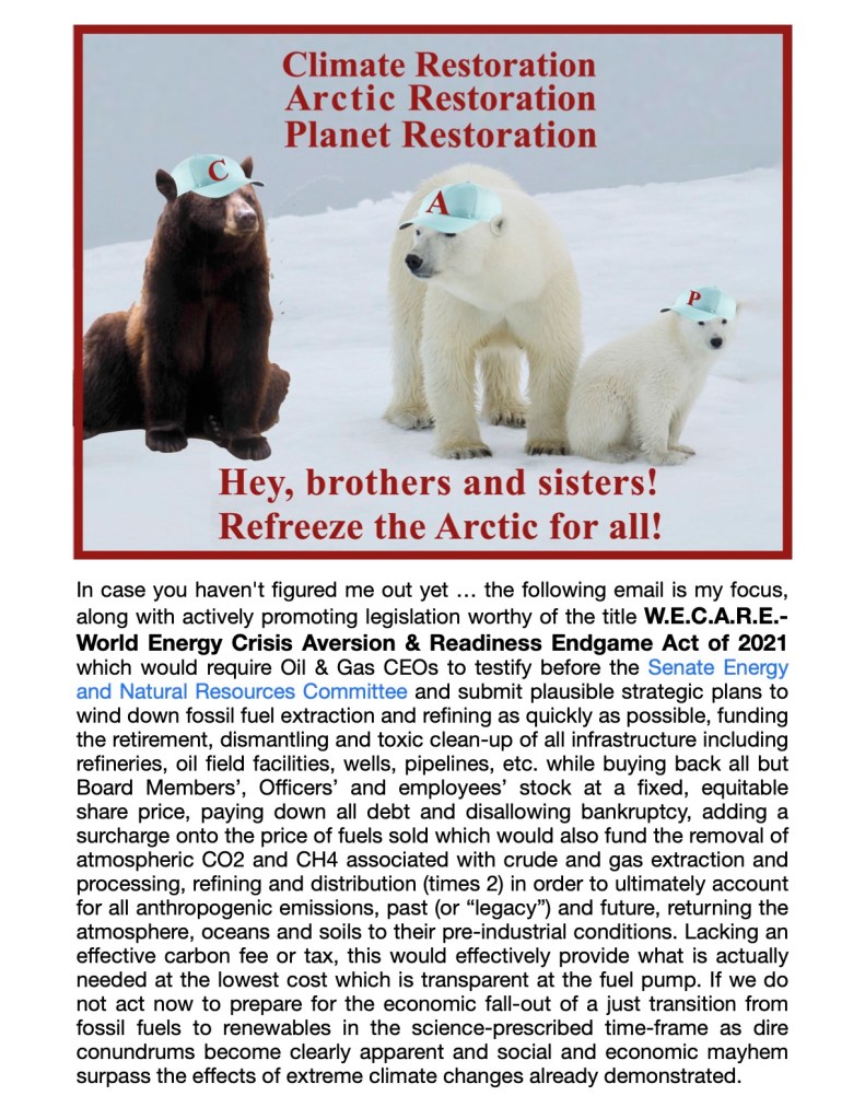 This entry was posted in Uncategorized and tagged arctic, climate, refreeze, restoration, WECARE. Bookmark the permalink.