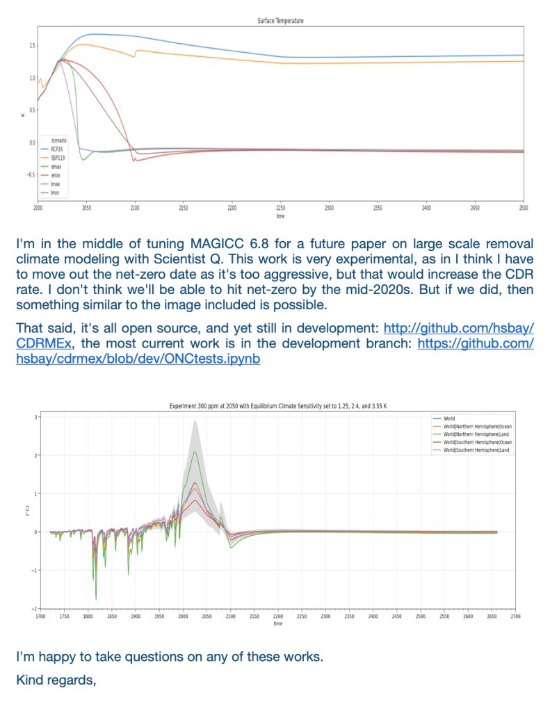 This is the 53rd in a series of actual scientists’ emails. Actual scientists deliberate and reprimand those who go off course. Deliberation continues with a researcher’s modeling of removal of CO2 or carbon by CDR in order to restore a healthy climate.nerd