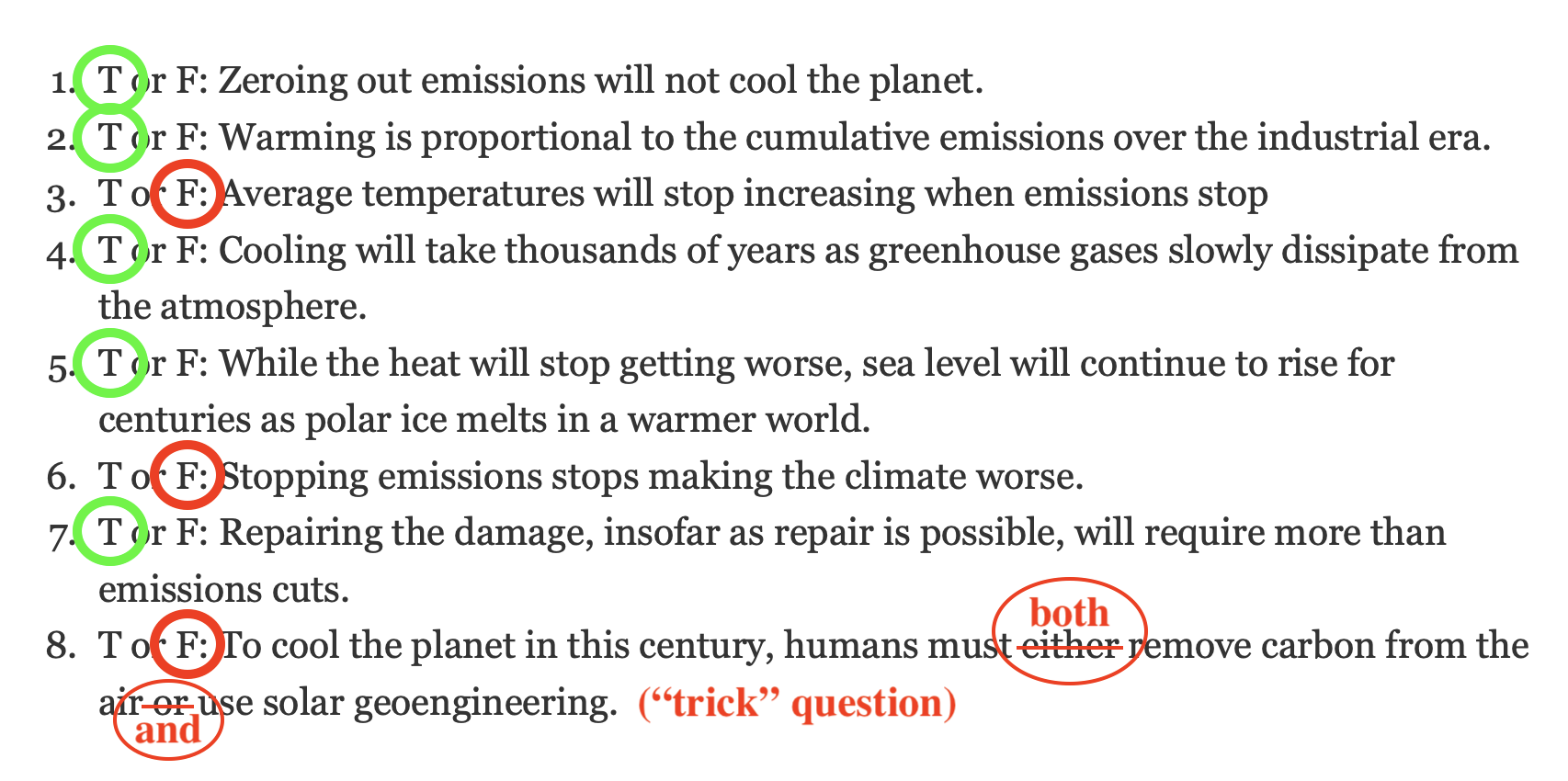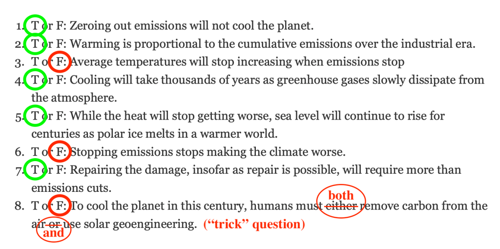What’s the Least Bad Way to Cool the Planet – True/False answers